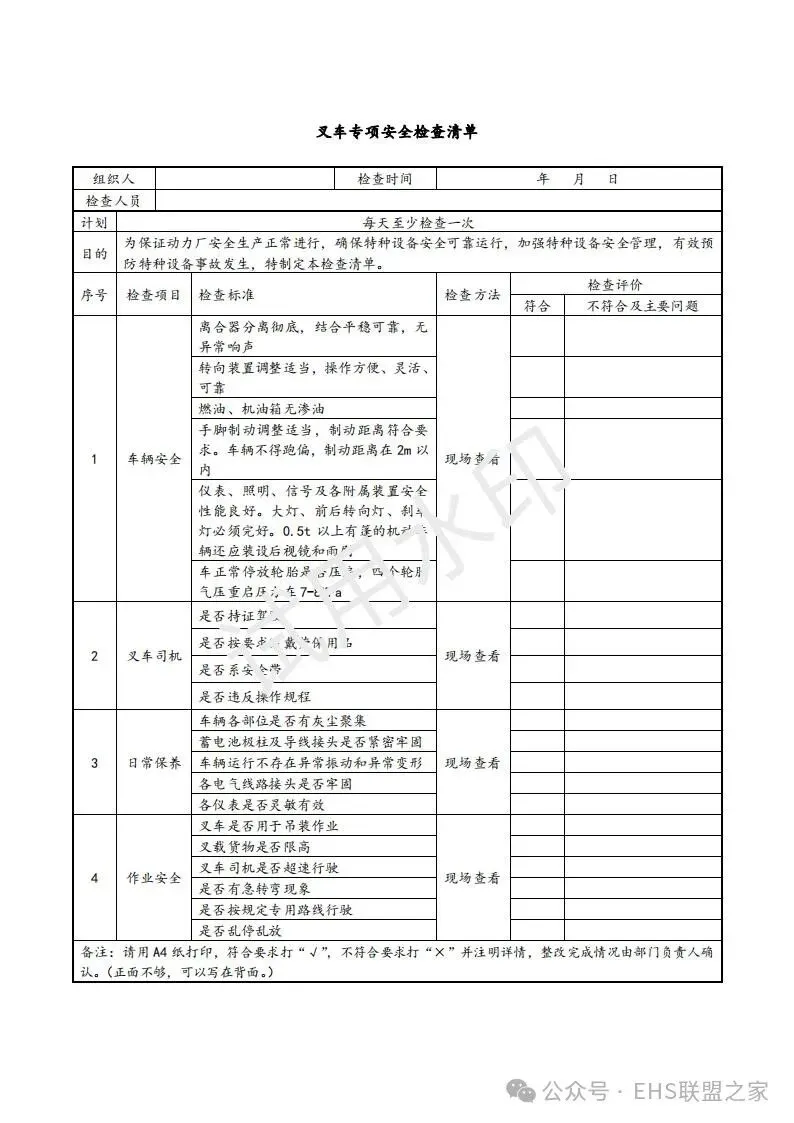 四、叉车安全专项检查清单