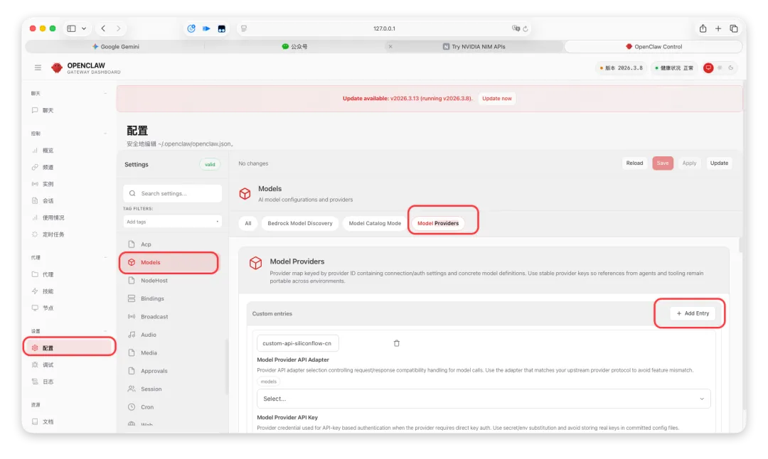 配置 > Models > Model Providers > Add Entry
