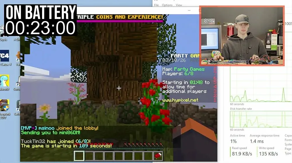虽然游戏体验不算流畅,但至少证明了一件事:台式电脑确实可以靠干电池运行。