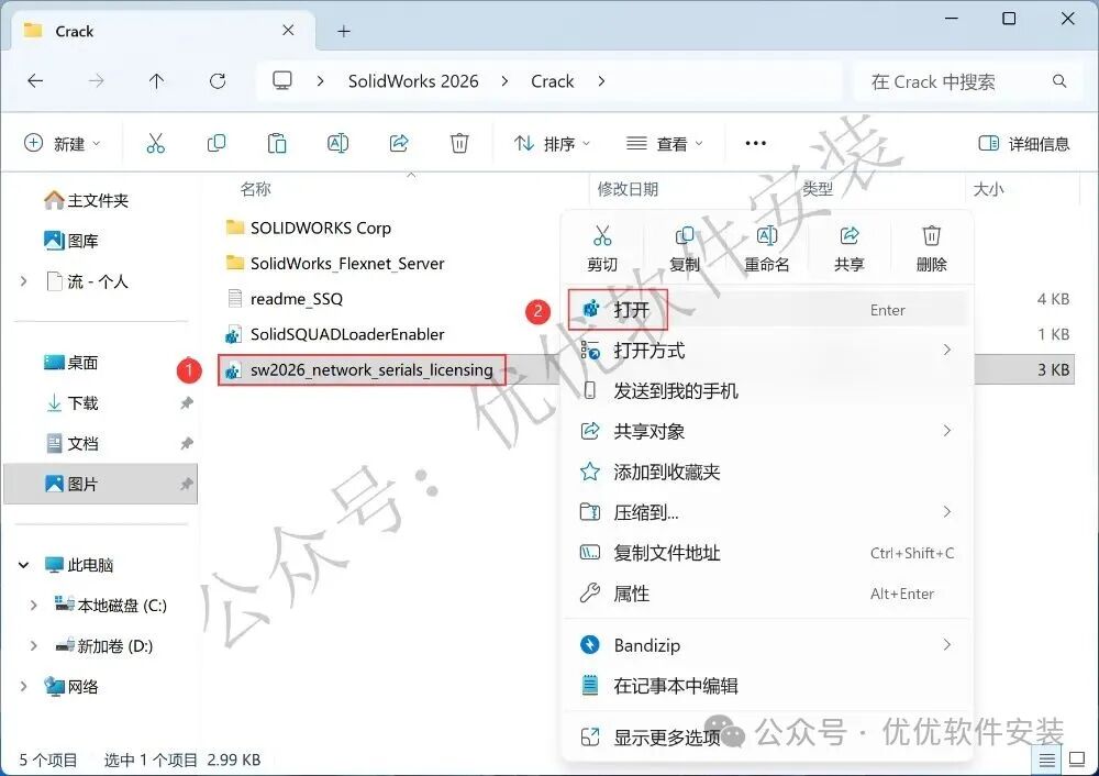 4、找到【sw2026_network…】文件,右键【打开】它