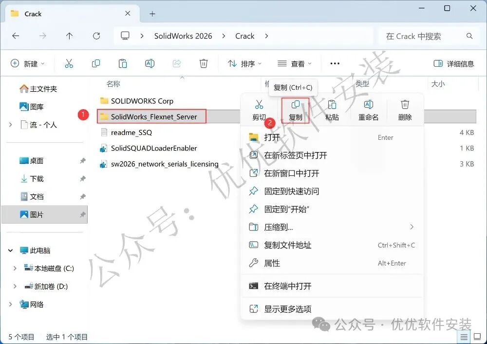 7、找到【SolidWorks_Flexnet_Server】文件夹,右键点击【复制按钮】