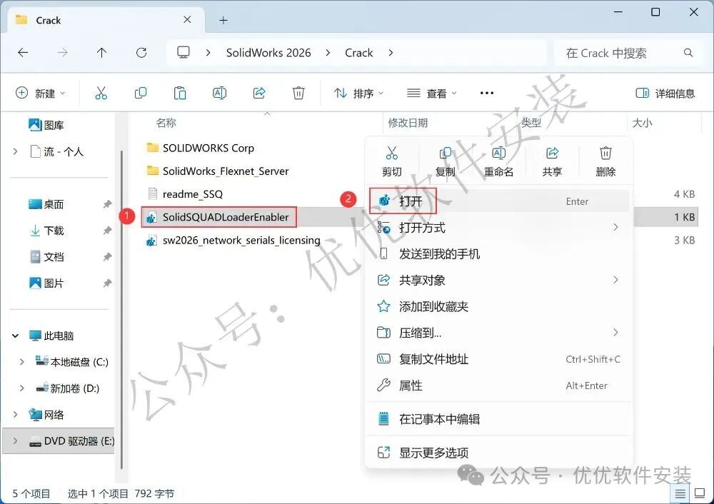 25、回到Crack文件夹,找到【SolidSQUAQLoaderEnabler】文件,右键【打开】它
