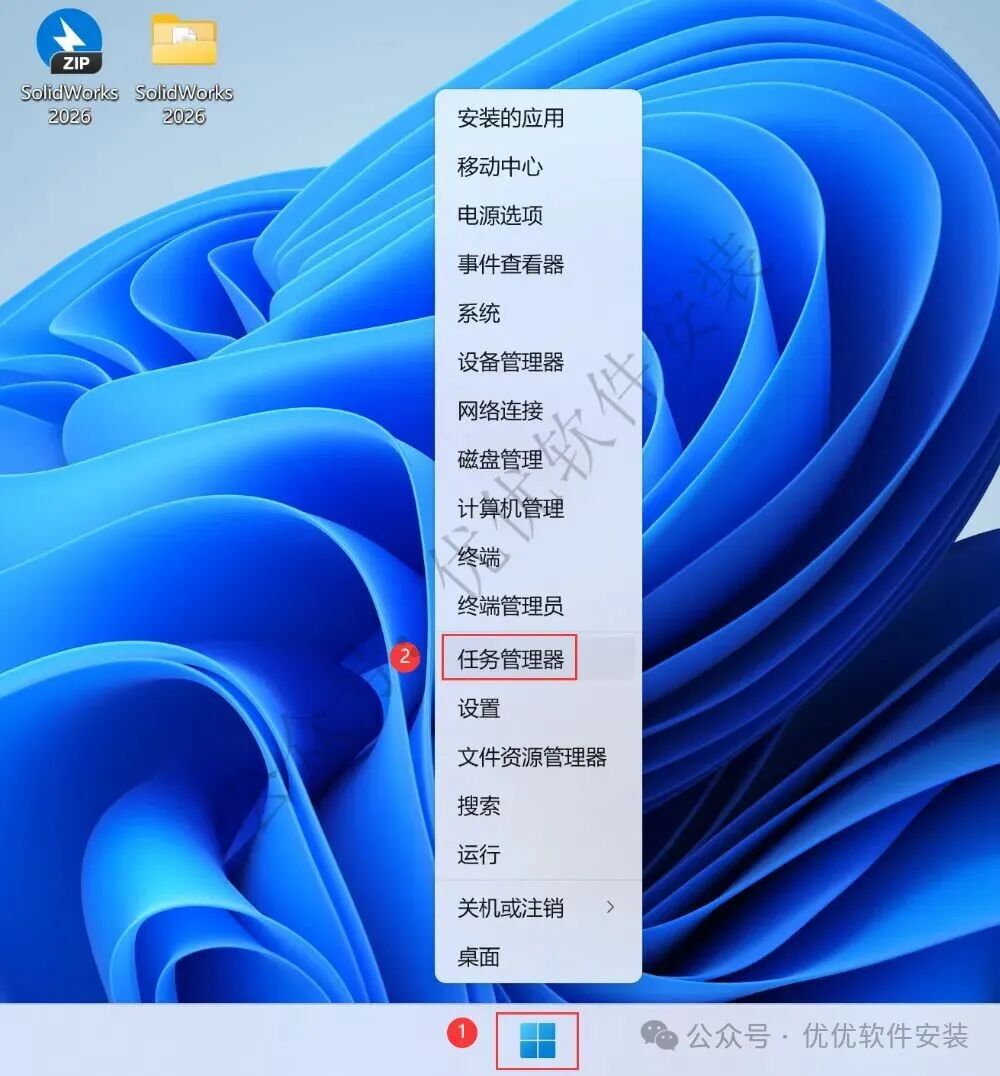 28、右键【Win图标】,再点击【任务管理器】