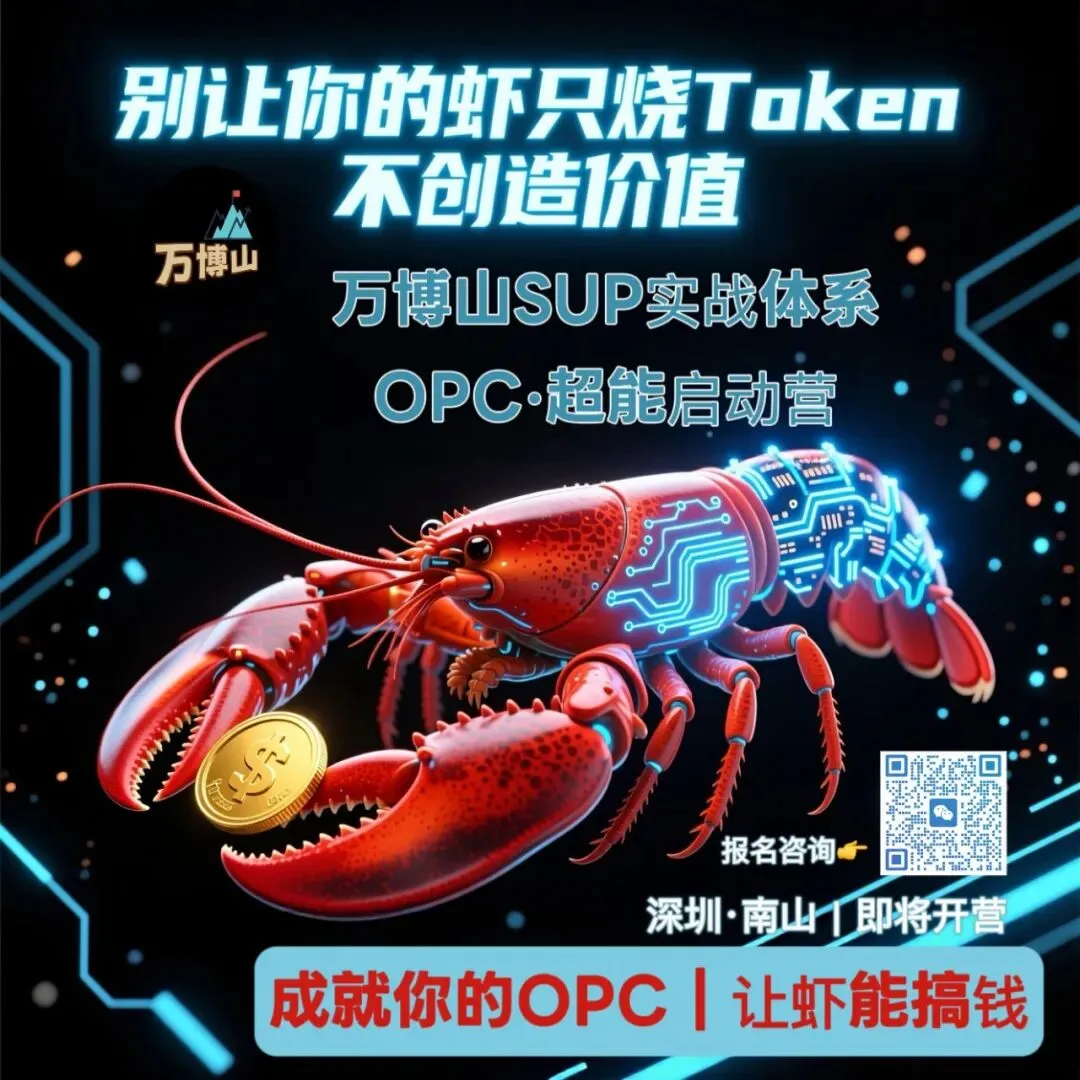如果你不想跟风交学费,想真正把AI变成自己的新生产力,智能体变成能自动赚钱的“印钞机”,欢迎进入万博山SUP实战体系,全方位助力你把宠物虾变为能赚钱的金虾群。