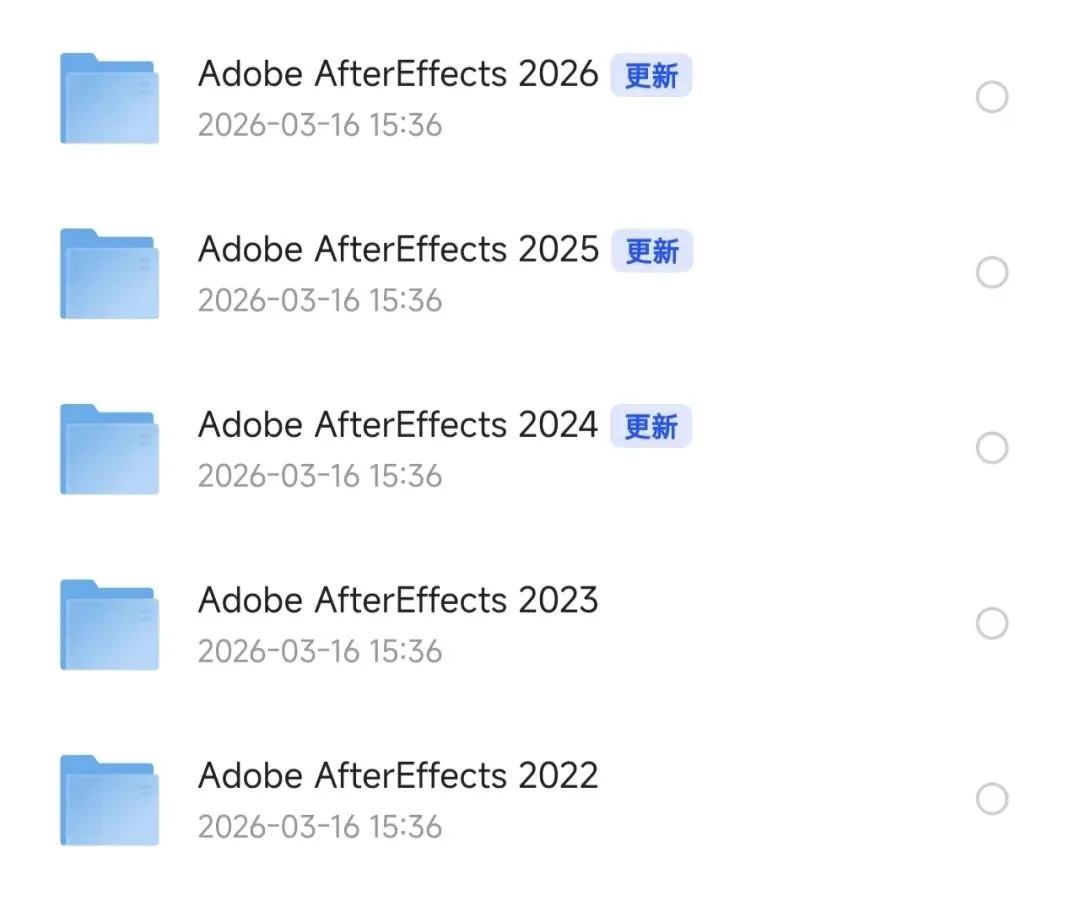 我从网上收集了adobe after effectsae纯净绿色无捆绑的中文安装包,里面包含了2022-2026win和mac的多个不同版本,无需激活,下载完就可以直接免费使用。需要的公众号输入“444”领取。