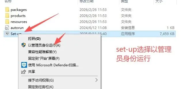 找到解压后的文件夹,里面有个Set-up.exe,右键点它选“以管理员身份运行”,直接双击权限会不够导致卡住
