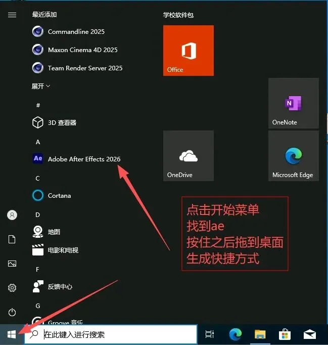 安装过程几分钟就完事,进度条跑完就能直接打开用了。然后打开开始菜单页面找到ae软件,创建快捷方式,这样就能直接在桌面打开了