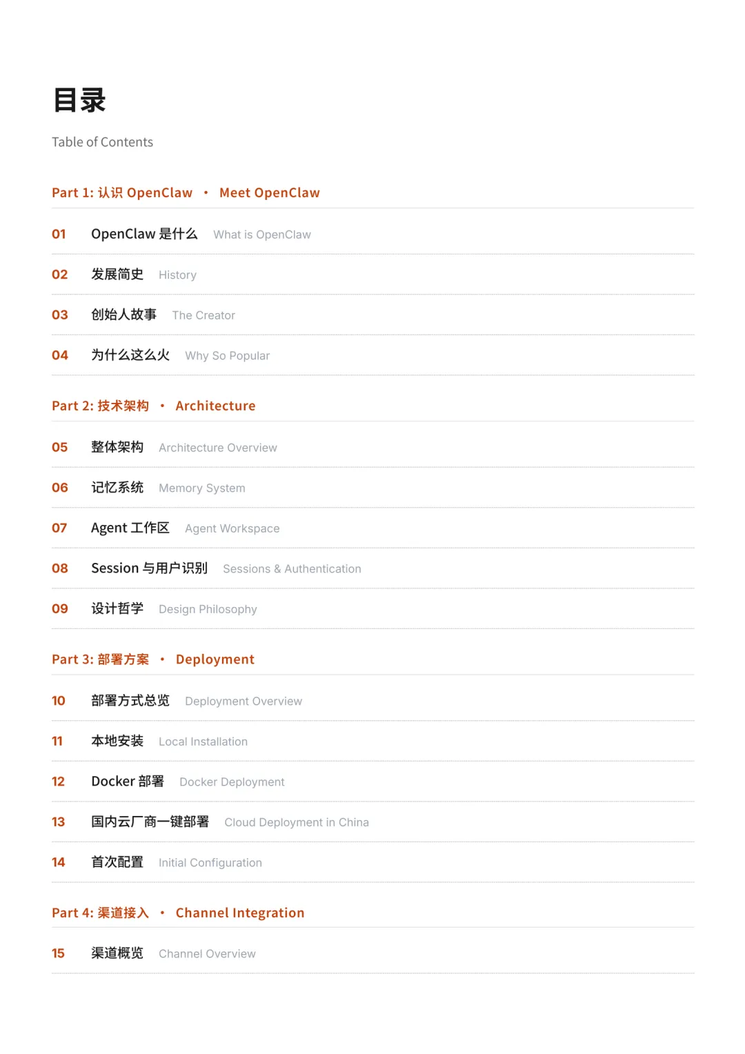 这份《OpenClaw 橙皮书 —— 从入门到精通》是 2026 年 3 月发布的 OpenClaw 一站式参考手册,适配 v2026.3.7 版本,涵盖其全生命周期相关知识,核心是讲解这款开源自托管 AI Agent 系统如何从聊天工具升级为可自主执行任务的 “数字员工”,以下是核心内容总结: