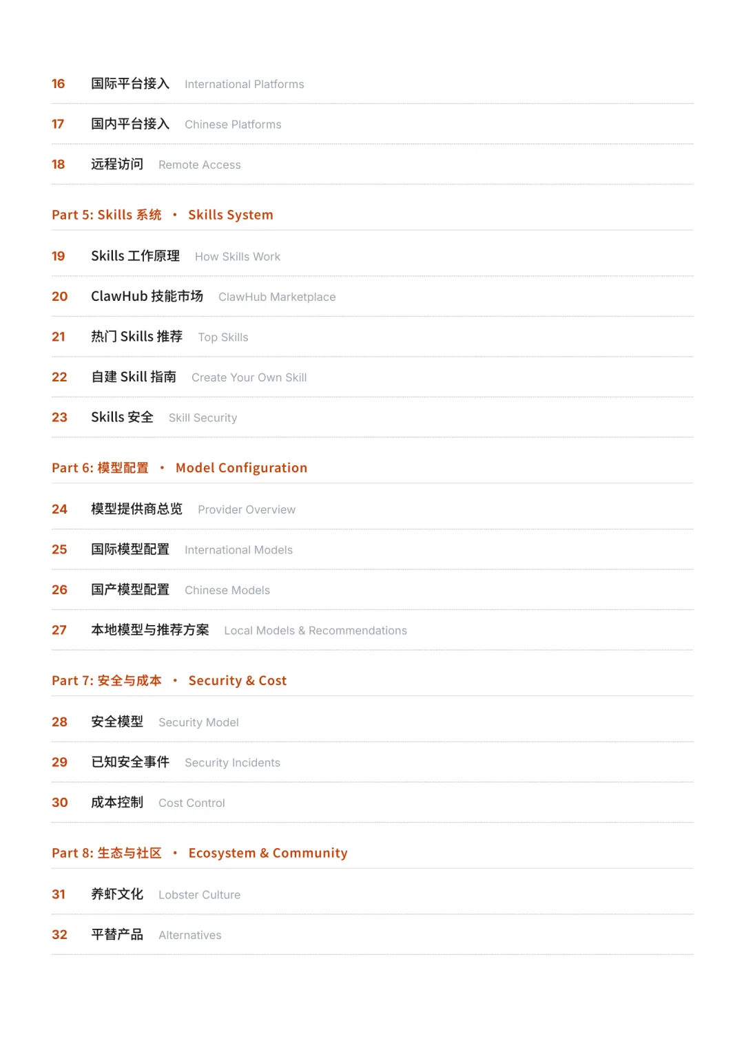 资源链接:包含官方仓库、文档、技能市场,社区精选技能、安全工具,国内插件、中文文档,以及各模型提供商 API 控制台地址。