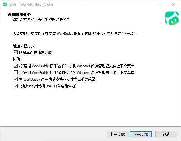 下载后,打开安装包进行安装,基本按照默认设置选择下一步继续安装即可,其中“选择选项任务”这一项,建议全选(Datawhale 推荐)。