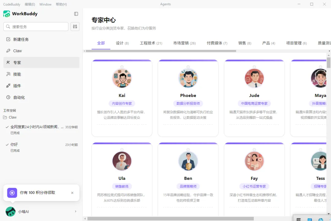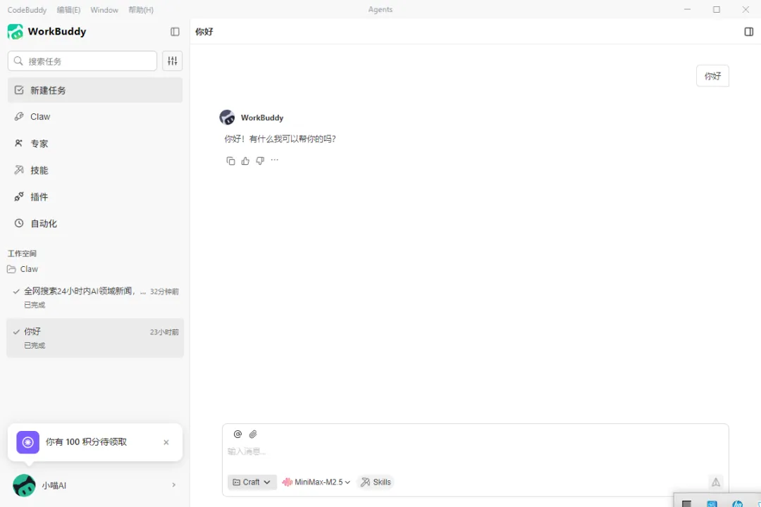 安装WorkBuddy后并打开,即可看到下列界面。