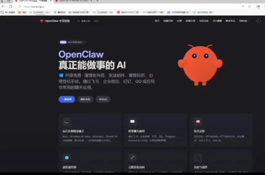 2.执行安装命令。进入OpenClaw官网,复制官方提供的安