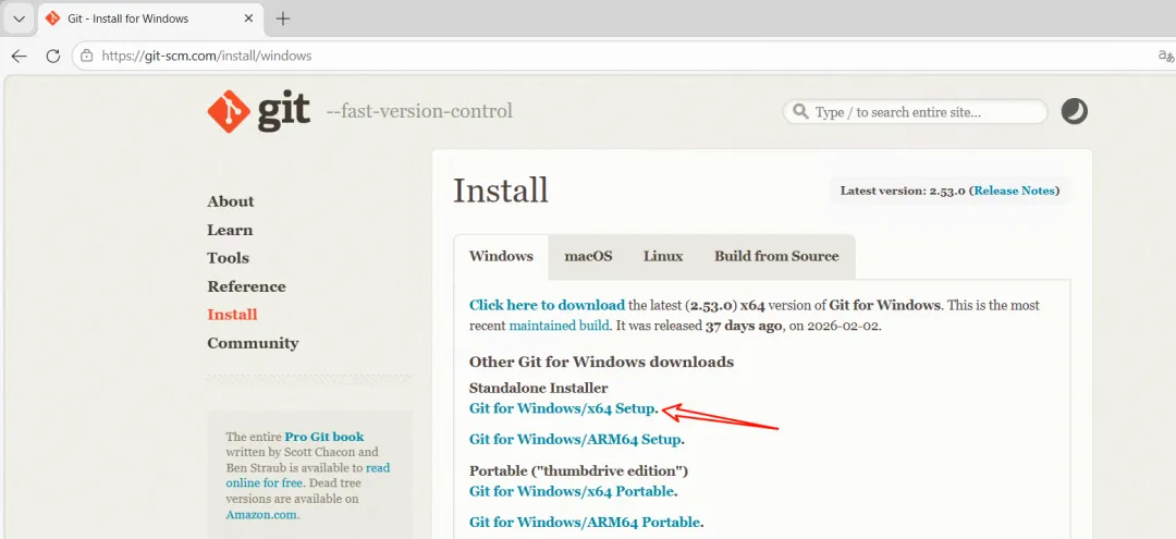 点击上图 Git for Windows/x64 Setup. (按架构下载,我的电脑是X86架构)