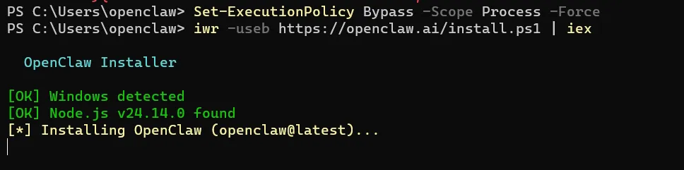 iwr -useb https://openclaw.ai/install.ps1 | iex