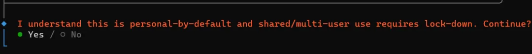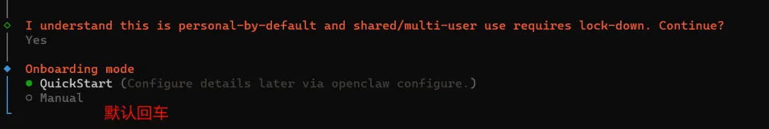 提示个人使用模式按键盘方向键可以选择 Yes or No ,选择Yes 继续。