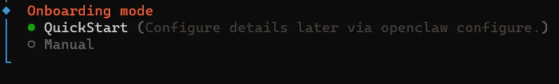 OpenClaw installed successfully (0penClaw 2026.3.8 (3caab92))!All done! I promise to only judge your code a little bit.Starting setup.说明 openclaw 已经安装完毕,进入初始化。