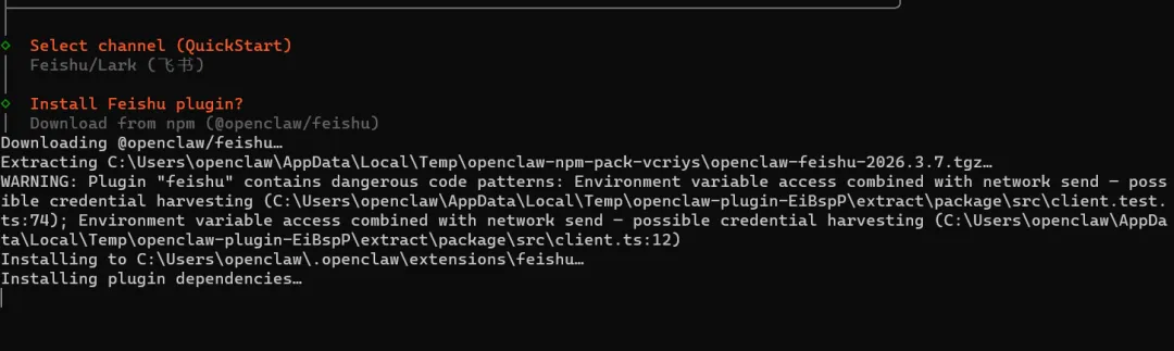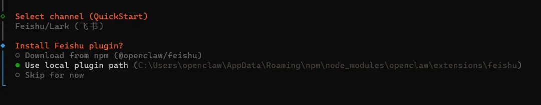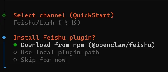 选择 Download from npm (@openclaw/feishu) 回车继续