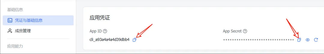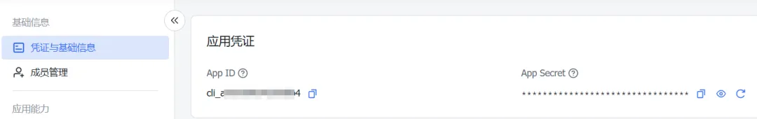 12、在“应用凭证”模块中,获取并记录App ID与App Secret信息。