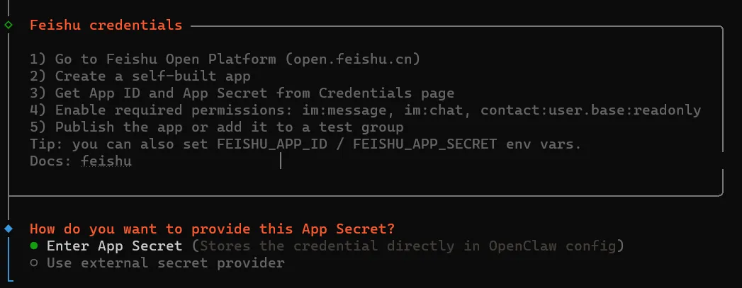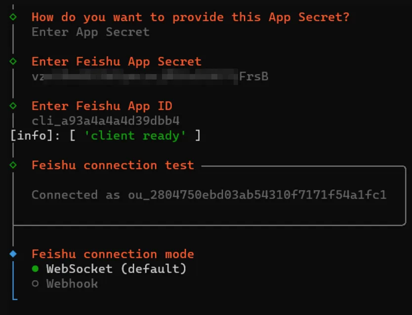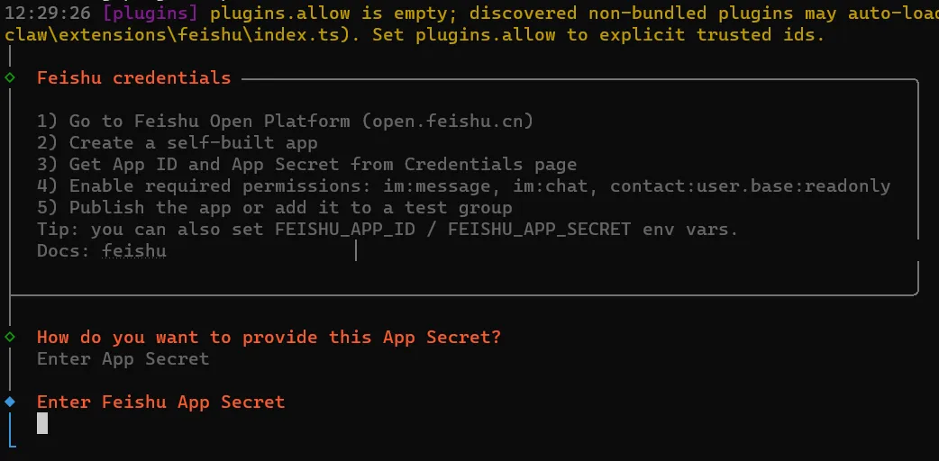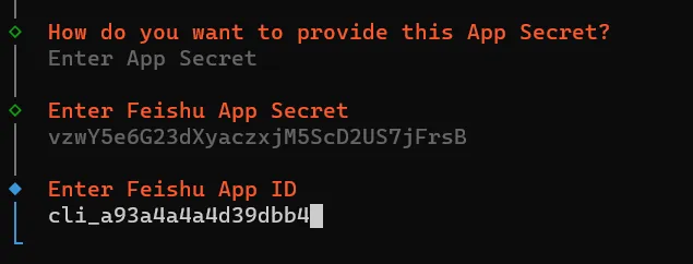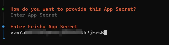 输入飞书刚才创建机器人的的 App Secret