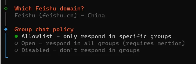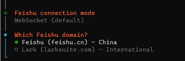 直接按回车,选默认的 Feishu (feishu.cn) - China