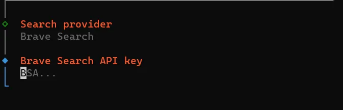 直接按回车,用默认的 Brave Search 即可,继续回车。