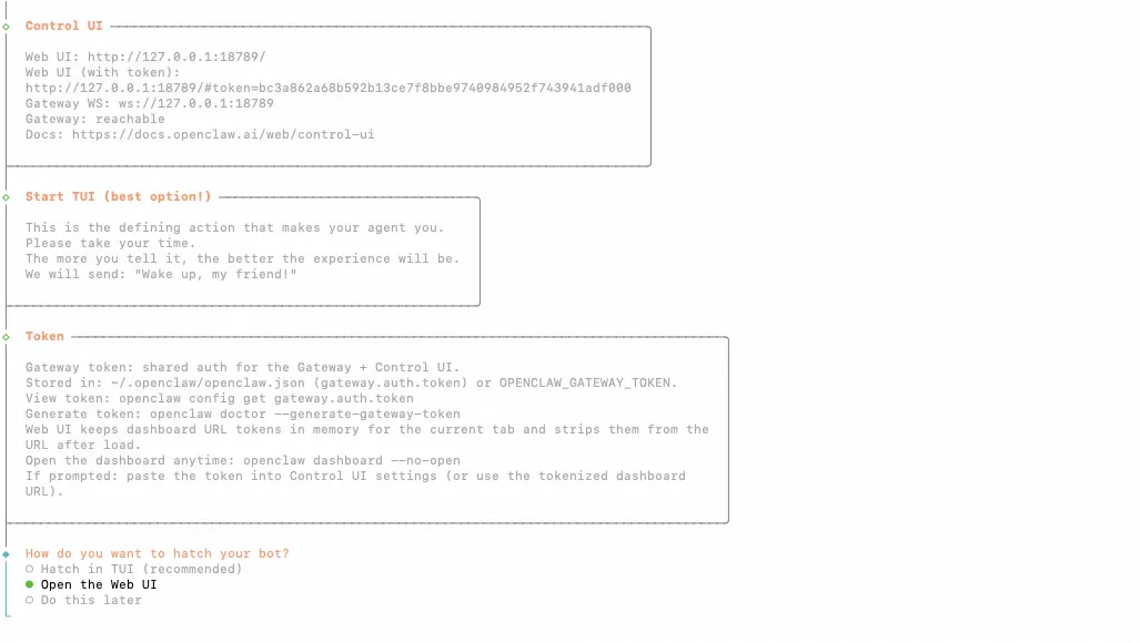 到这里OpenClaw就安装部署好了。