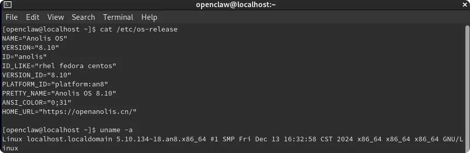 今天这篇教程,我会基于全新安装的Anolis OS 8.10(x86_64架构),带你完成OpenClaw的完整安装与初始化,全程标注新手易踩的坑和解决方案,确保你跟着做就能成功。