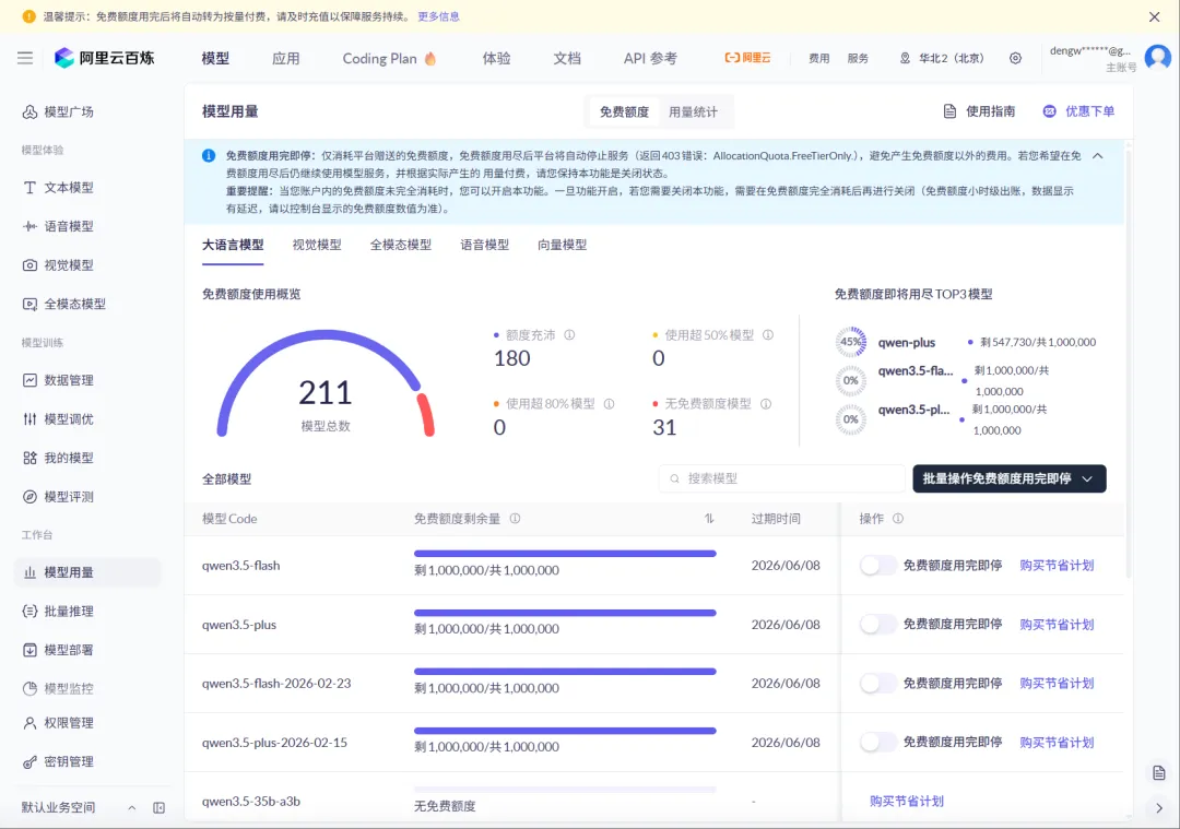 阿里百炼有免费的100万Token。