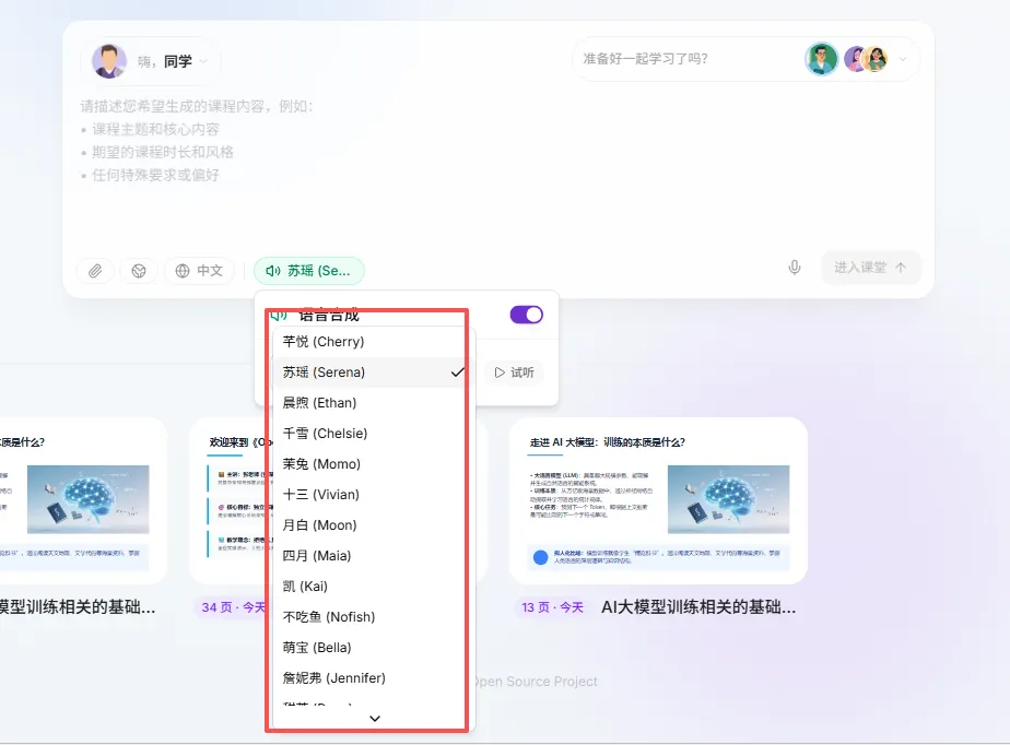 最后再选择一下老师的音色,这一步看似无关紧要,其实暗藏玄机。