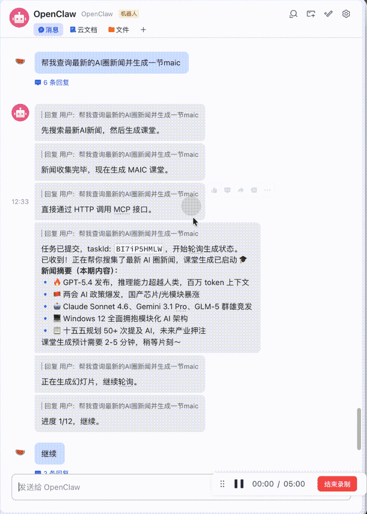 话说,在小龙虾里调用OpenMAIC生成一篇关于小龙虾的教程,这算不算是一种赛博套娃呢?