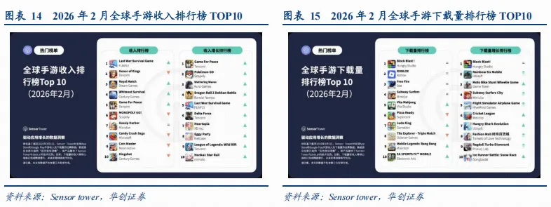 根据Sensor Tower,《Last War: Survival》在2026年2月表现强劲,跃升为全球收入最高的手游。紧随其后的是《王者荣耀》、《Royal Match》以及《Whiteout Survival》,《和平精英》(Game For Peace)则位列全球前五。《Block Blast!》在2026年2月蝉联全球手游下载榜冠军,延续了其在上月的第1名地位,《ROBLOX》、《Free Fire》、《Subway Surfers》和《Vita Mahjong》位列下载榜2-5名。