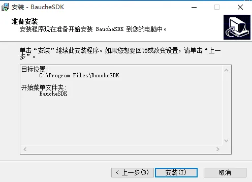 2. 解压相机驱动程序安装包,在打开的文件中找到文件“BaucheSDK”,双击进行安装,如图1: