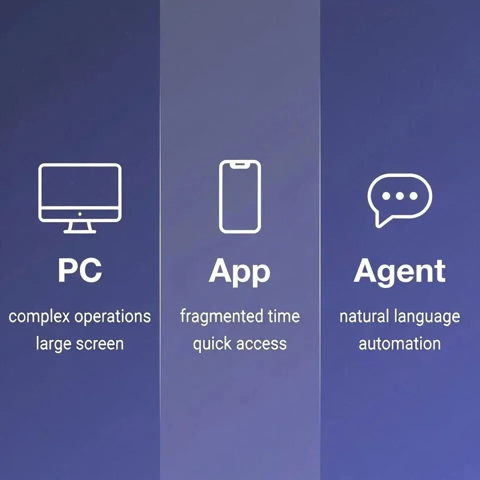 今天,软件厂商增加Agent端,也不会放弃PC端和App端。