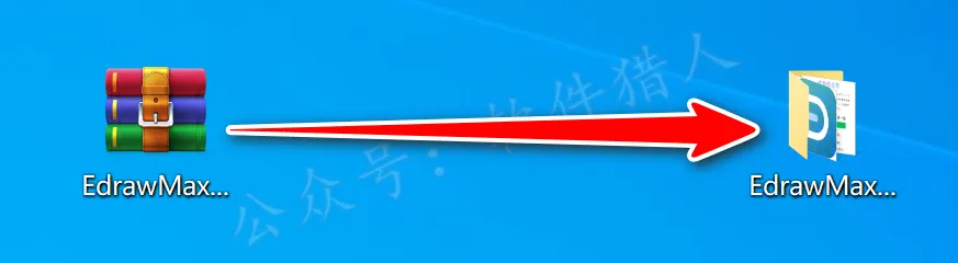 1.关注本公众号后回复“亿图图示”,即可获取最新安装教程(页面里附有下载链接,若失效会维护),小编将下载好的压缩包移动到桌面并右键解压到当前位置,方便安装后即将安装包删除。(没有解压软件?点我查看解压教程!)