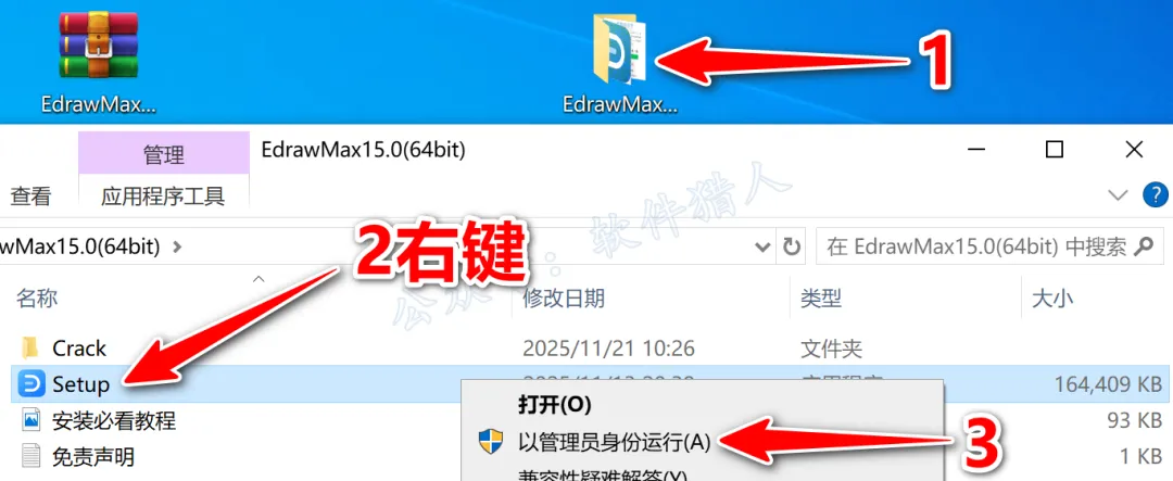 2.打开解压后的文件夹,鼠标右击【Setup】选择【以管理员身份运行】。