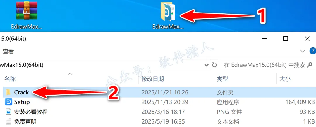 10.打开安装包解压后的【EdrawMax15.0(64bit)】文件夹,双击打开【Crack】文件夹。