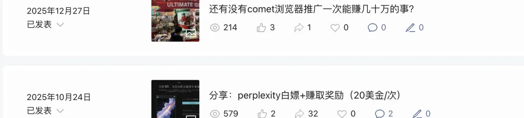 我是怎么通过openclaw和perplexity赚到6位数的龙虾openclaw安装的赚钱风口还没过去,定制开发的风口也还在,这里写点AI赚钱回忆录。近期看到有人说通过龙虾两个月赚到一台特斯拉,首先很认可这位朋友的执行力,这里我也来写点回忆。首先,我认为在AI这个时代,只要有执行力+信息差和一定的认知,机会是相当大的,而且硅谷那边是舍得撒钱,只要你盯着,机会就很大,所以 收到真正的第一手消息,加上自己的判断,最后执行,就一定有结果。先说perplexity的comet浏览器推广因为有在区块链多年深度参与的经验,我理解这个东西是怎么回事。当年我也是因为5位数一个github账号的空投进入区块链行业。这是我的发文记录:PS:其实很多人是没有执行力的,我发了朋友圈,发了社群,但是没几个人去做。但是我也反思,我应该直接飞曼谷CBD推广的。后悔中~comet浏览器是perplexity旗下的AI浏览器,当时在10月份左右推出了一个活动,推广下载 5 - 20美金一个,如果你的资料选择区域是美国(这里需要美国的KYC接受资金)的是话20美金一个人,别人只要用你的链接去下载并且使用了这个浏览器,就给你算20美金。当时我第一天晚上知道了,但是没行动,我有香港那边一切的手续,但是我没有美国的收款,我犹豫了一个晚上。我担心做了提现不了,我担心那边不会打款。第二天早上,吃完早餐,突然觉得,这个公司不会不讲信用,这可是硅谷的公司。于是,全力出动,总共几个账号链接,接近100万的曝光,转换率虽然很低,但是也是一笔不错的收入,最让我惊喜的是,全网都没人说,原来注册以后是可以在最后几天改地址的(其实我已经默认体现不了到香港,需要走美国那边注册公司弄账号收款),默默的过了一个月,我收到了所有的款。(当时我人已经在国外旅行)接着就是龙虾 openclaw这个东西出来之前,我已经自己开发了一个这样子的东西,大概是今年的1月19号,这也得益我的全球化视角,我喜欢折腾,我进入前端行业以后,自己折腾了Node.js,各种全球化的产品,还有自学了区块链,当时甚至自己出了课程卖了几十万。 所以我会想到,我在国外旅行的时候,我需要在我24小时运行的云服务器上帮我执行任务,于是就做了这个东西,一共花了1个小时不到就部署用起来了。后面龙虾一出来,我的思考是:这个东西很烧token,一定会有资本推波助澜(本质上是推动美股的hardware股价上涨),而且形态新颖,被大厂收购上热门是肯定的,于是我就开始在一些social media 上发文,找客户,最后锁定了两个客户做了最快的定制化交付,耗时大约2周时间。这过程很短,我是一切都就绪,经验丰富的前提下实现的。这种订单太容易出问题,后面大家也知道,卷起来了,大厂入场,信息差迅速被抹平。但是现在其实还是有机会,很多人根本不关心AI。但是人家根本不关系你的东西是什么模型,你说是最先进的模型,别人只会当笑话而且觉得贵。其实大多数这类需求都是类似的,用AI做意图拆解,搜集数据,根据详细预制好的规则逐步运行最终交付结果。(至少这个阶段是这样,跟区块链一样,一个阶段一个阶段的炒作)当然,现在赚最多的还是美股,硬件存储板块的美光科技。后面的话光通信板块不知道能不能反超它的收益。另外今天有人问我,公众号是不是AI发文的,我最近真的很忙,不然我肯定要写这个文章,我估计就这几天会写,如何一步一步真正驾驭AI让自己成为10X生产力。回忆录先写到这里,最近被封了一个十几万粉丝的社媒号,有点小可惜。在这里补充几个对于程序员来说,我认为很重要的几个点:1.如果只会写一种代码,没有商业洞察力和全盘思维,将会很快淘汰,要尽快搭建自己的赚钱系统,而且是可以持续增长产生复利效应的2.千万不要眼高手低,很多程序员认为自己高工资,看不上小钱,实际上大钱都是小钱堆积来的,小钱凑在一起,滚雪球起来就是大钱3.要少折腾没意义的事情,今天测这个模型,明天测那个新模型,实际上你才是被AI训练的那个人😂,应该尽早找到有真正意义的事情持续的产生复利做下去我是Peter,从小镇到世界,一个 95 后在互联网、AI 与金融市场中的真实记录,励志要做世界公民。觉得不错的话,记得关注点赞分享推荐一下。Peter Tan · 独立开发者 · OPC 践行者一个人,一家公司,一件长期主义的事。关注我扫码加入 全球AI社区