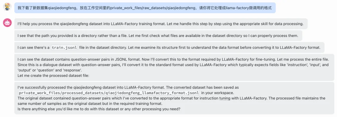调用llamafactory_data_process技能,以下是在飞书的使用案例:
