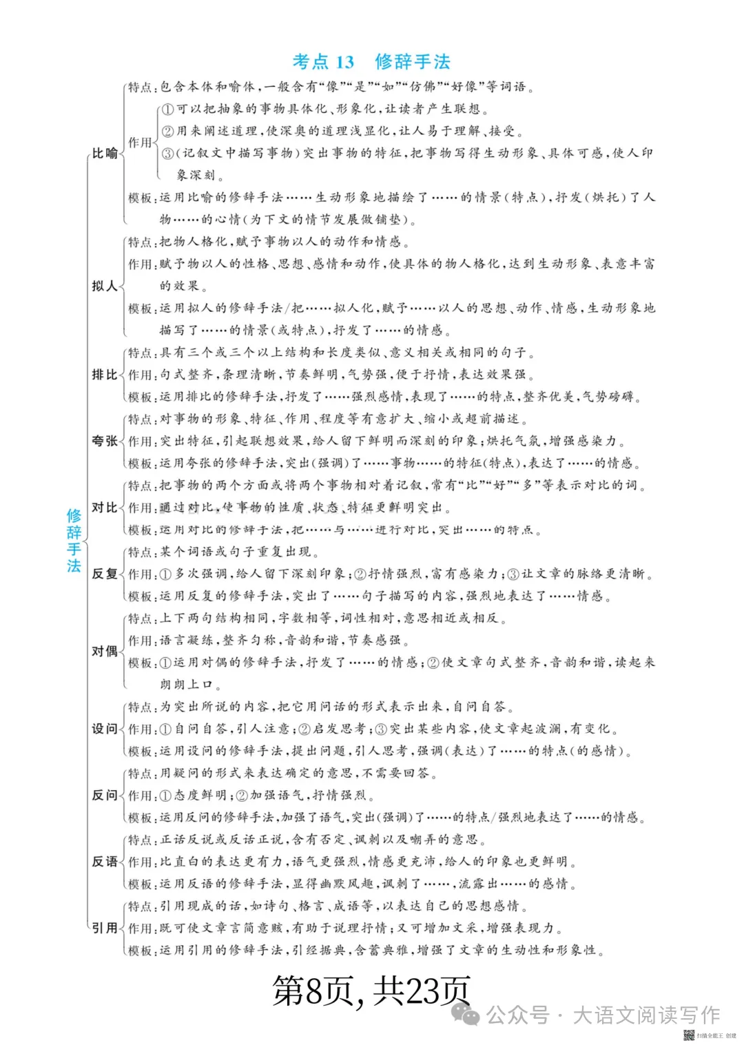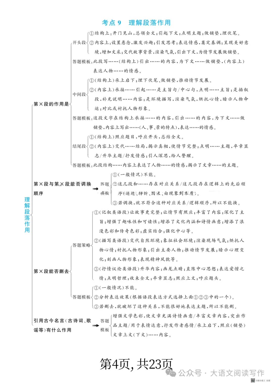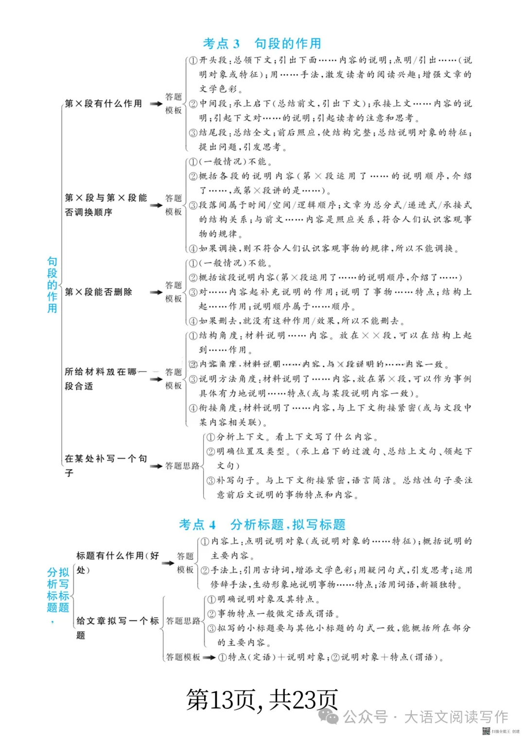阅读理解答题模板能帮学生快速理清答题思路,规范答题语言,