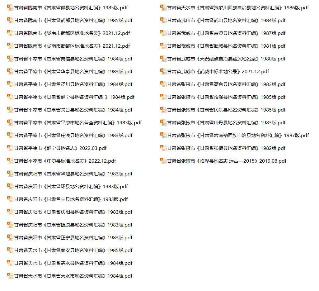 甘肃省地名志目录
