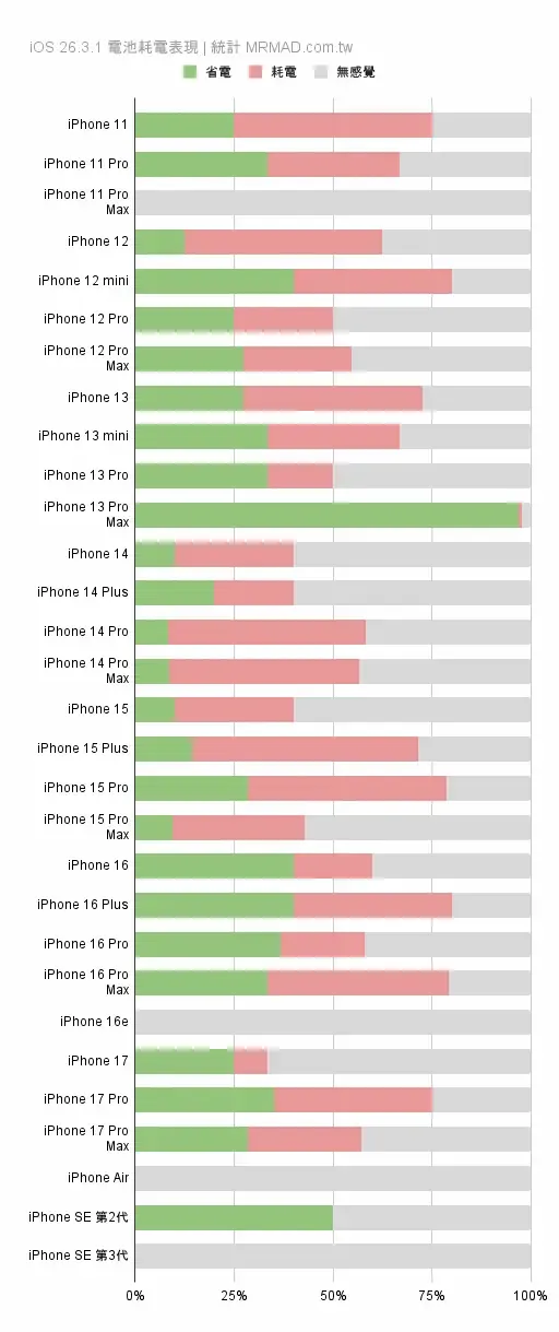 科代表特别想要把一个点讲明白。国外有实际测量的数据显示,在iOS 26.3.1的情况下,iPhone 16掉电比较明显,看起来挺厉害的,可是结合众多用户实际使用反馈来看,没有出现大范围的一样的问题。