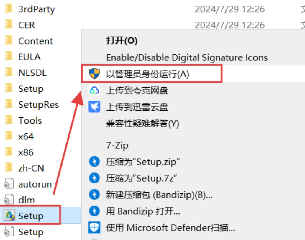 4.点击setup,以管理员身份运行