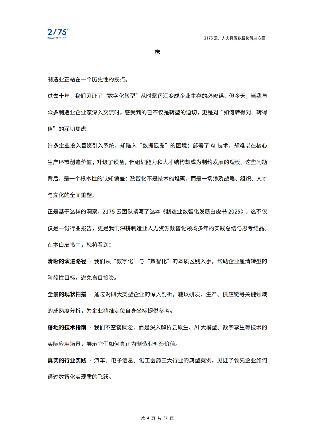 2025 年制造业数智化发展白皮书由 2175 云发布,立足制造业人力资源数智化实践,深度解析行业从数字化转型到数智化升级的跃迁逻辑,为企业提供转型战略指南与行动路线图。