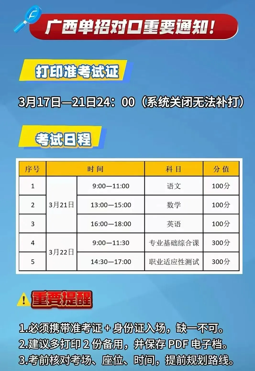 通知通知!单招对口准考证下载打印,今天开始,同学们记得下载,错过打印时间,进不了考场