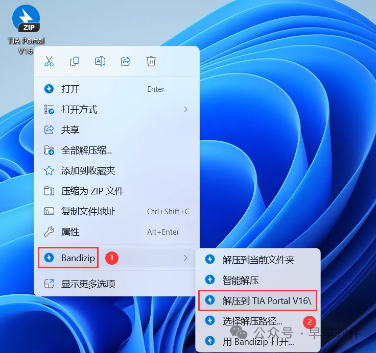 1、下载TIA Portal V16软件安装包到电脑上,右键选择【解压到TIA Portal V16\】