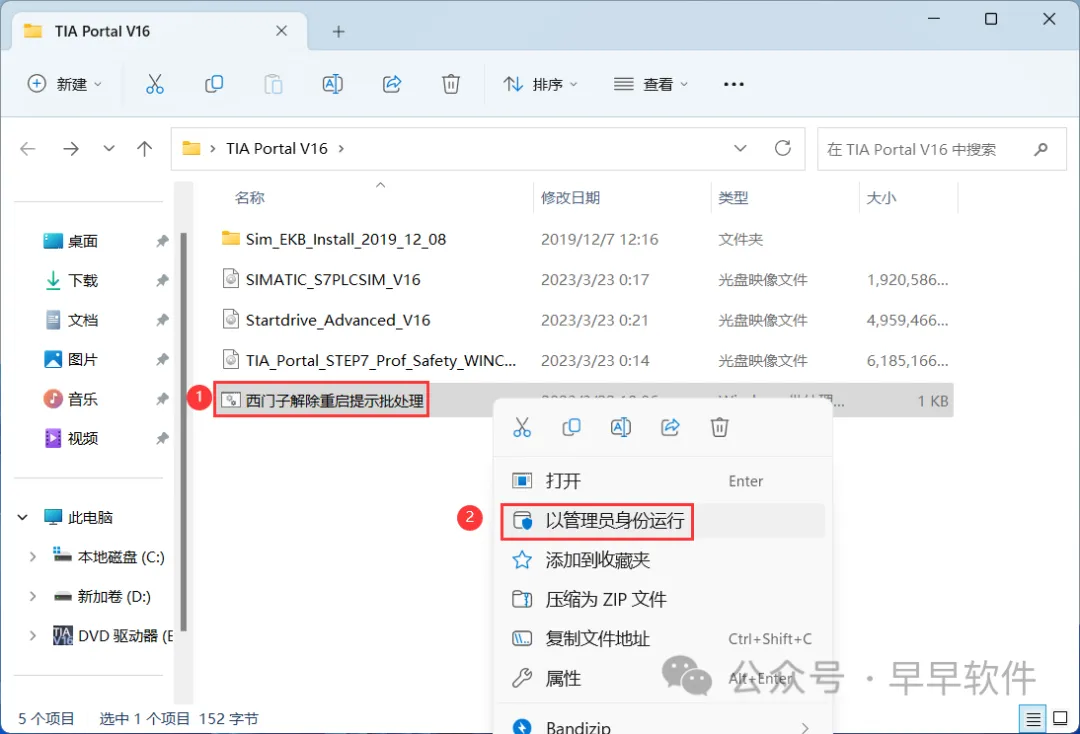 15、找到【西门子解除重启提示批处理】文件,右键选择【以管理员身份运行】它