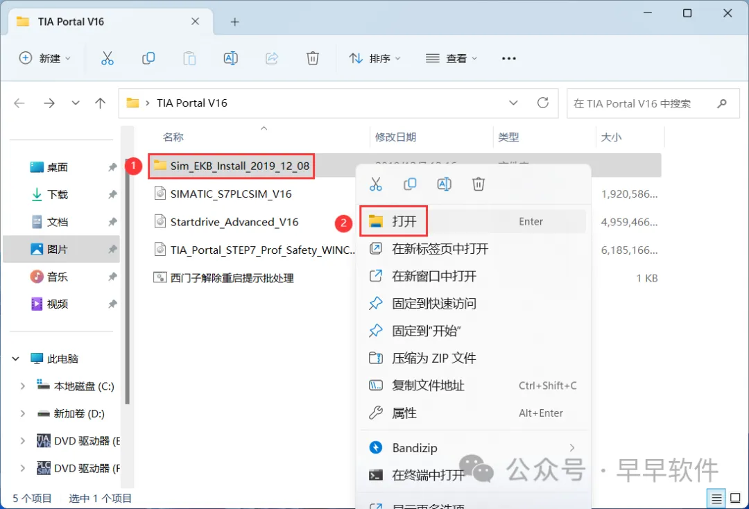29、回到TIA Portal V16文件夹,找到【Sim_EKB_Install…】文件夹,右键【打开】它