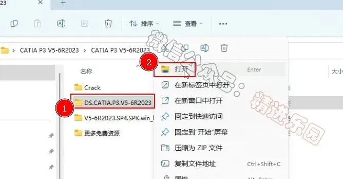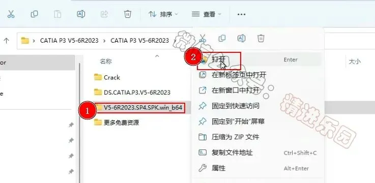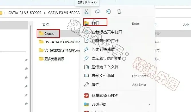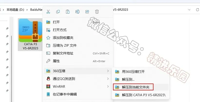 1、下载CATIA P3 V5-6R2023软件安装包到电脑上,右键选择【解压到当前文件夹】