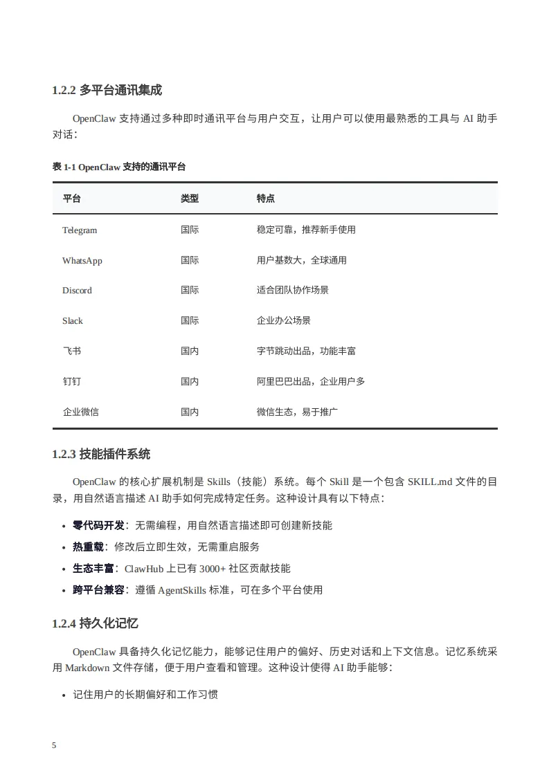 OpenClaw 支持多平台同时接入,能适配不同通讯工具的原生特性,其架构专为 AI 代理设计,原生支持工具调用、长期记忆、多代理协作等高级功能。基于 MIT 许可证开源的它,已形成活跃的开发者社区和技能生态市场。