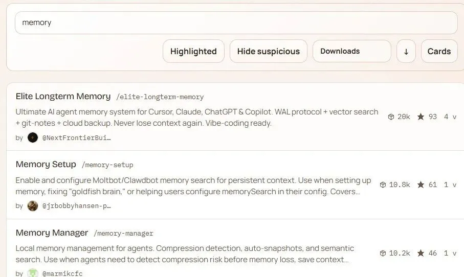 ClawHub上有很多关于记忆优化、备份的Skills。例如: